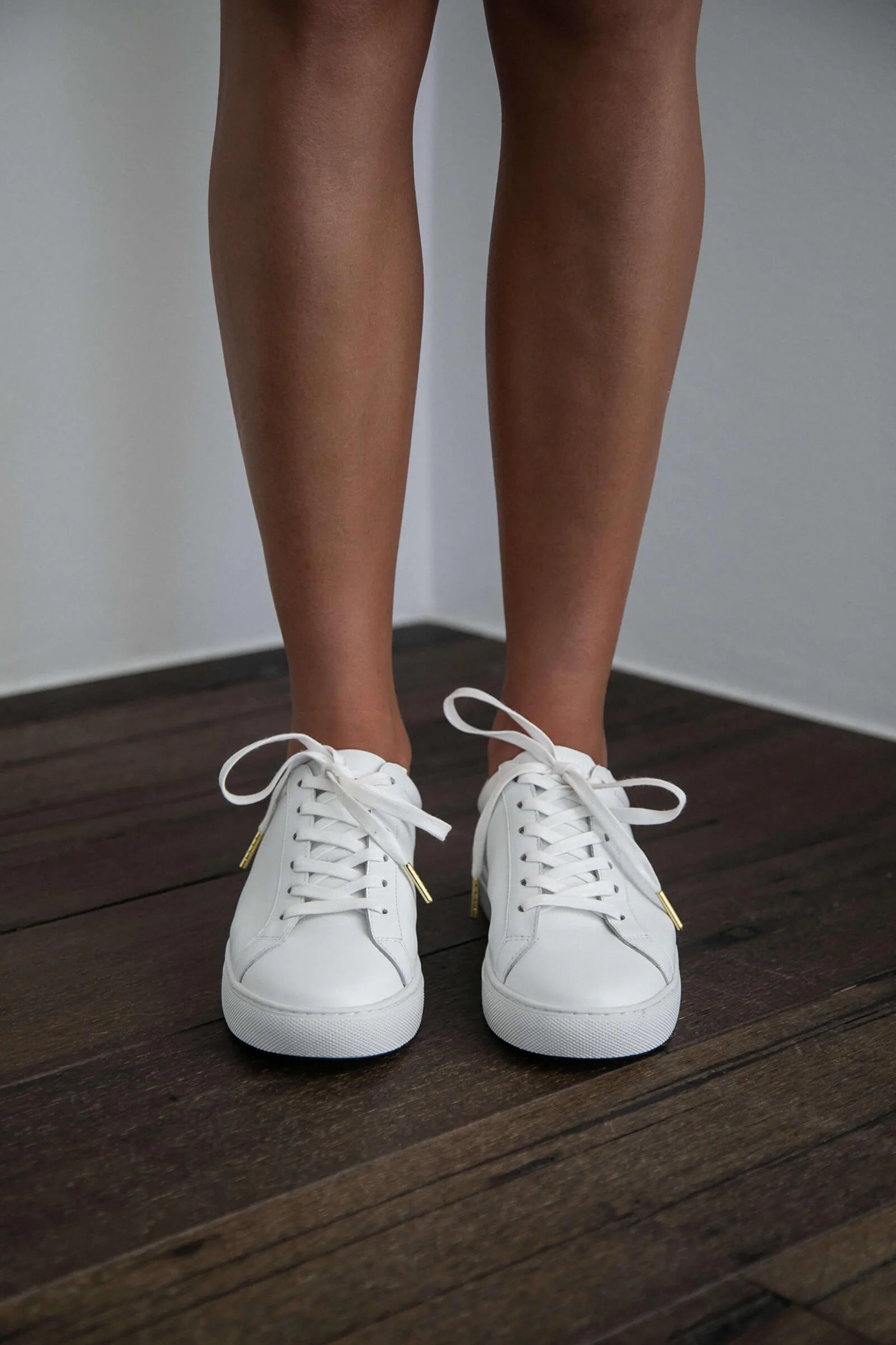 Introducing our Essential White Leather Sneaker, a modern staple for the bride seeking comfort. Crafted from soft leather with a practical rubber sole, these shoes offer the bridal party a comfortable wedding shoe that can be worn for years to come.